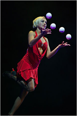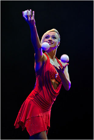Mila Roujilo was born in an artists’ family, in Russia. At fourteen years old, she started to perform with her brother Pavel Roujilo and made a duo juggling act. They performed in Budapest circus festival, in casino circus-circus, USA and all over the world. In 2003, Mila began her solo career. She moved to Germany in 2005 and started to work in Europe as a solo juggler. In 2012, Mila created a new hula-hoop act and started to work in a lot of varieties.